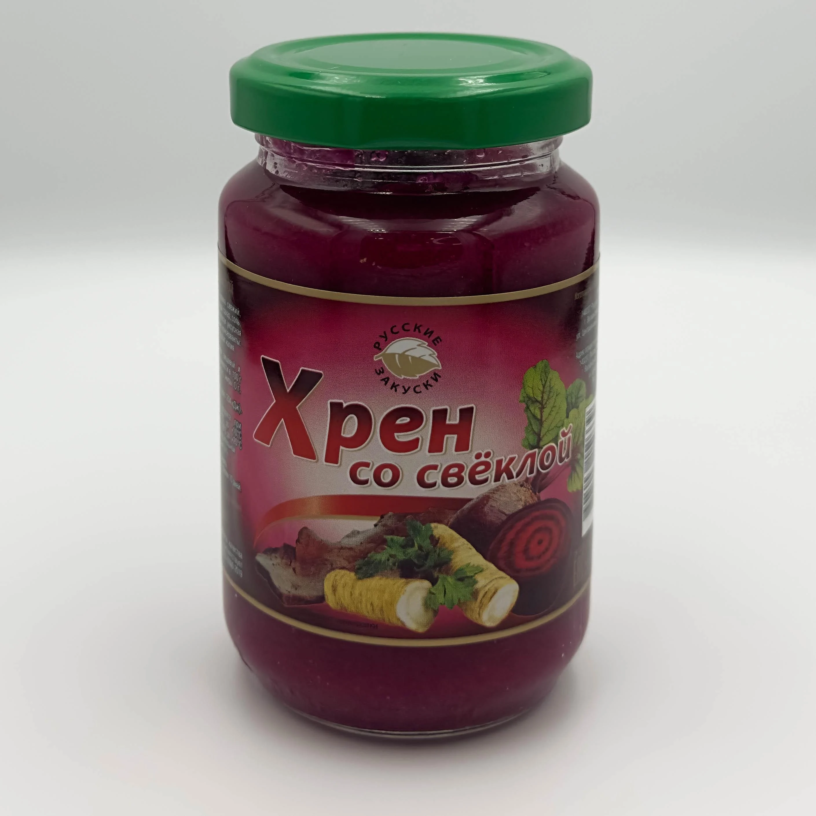 Хрен со свеклой Стеклянная банка 200 граммХрен со свеклой - рубиновый соус с лёгкой сладостью, к мясу и борщу